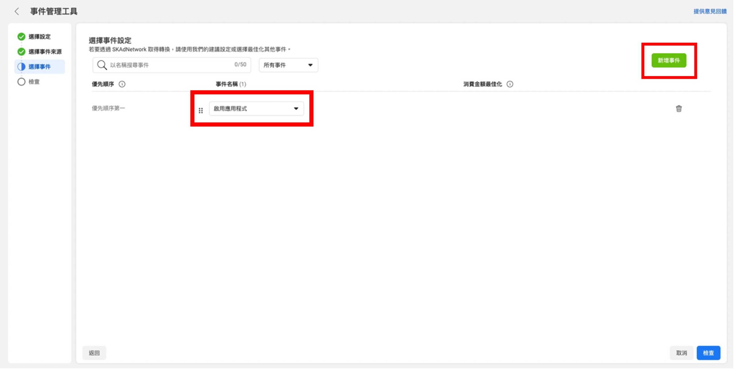 III.即可新增/選擇要衡量的事件並進行排序,最後再進行檢查。
